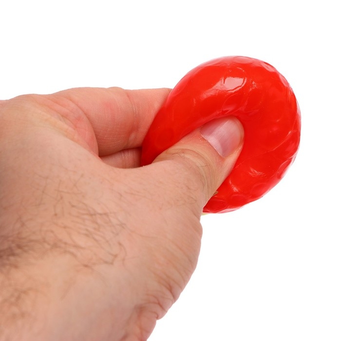 - Внутри мялки находится специальный наполнитель. Разминая его, ребёнок потренирует мелкую моторику рук.