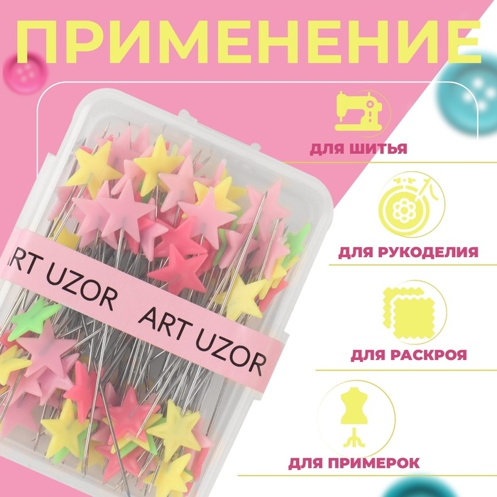 Булавки для квилтинга «Звёздочки», 52 мм, 100 шт, цвет разноцветный