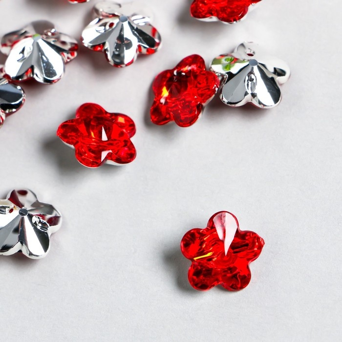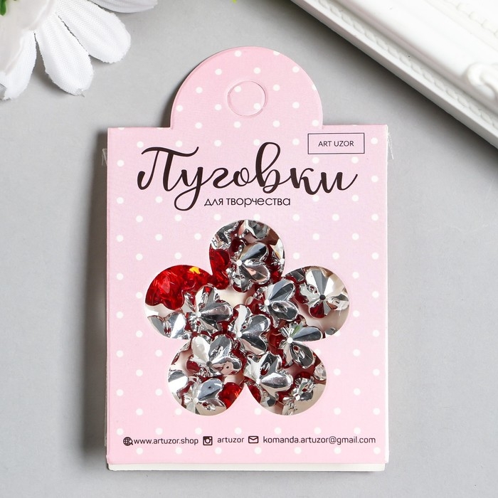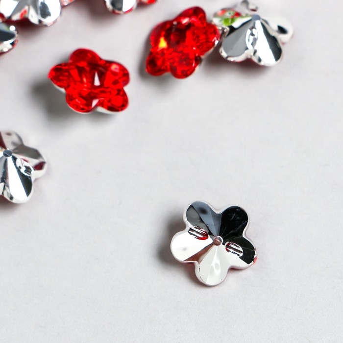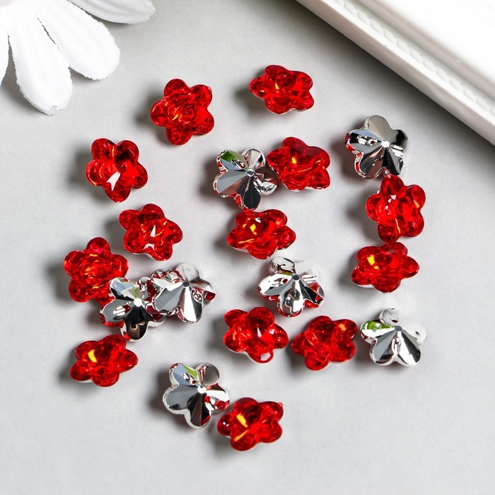 Пуговицы пластик для творчества 1 прокол "Цветок страз. Красный" набор 20 шт d=1,2 см
