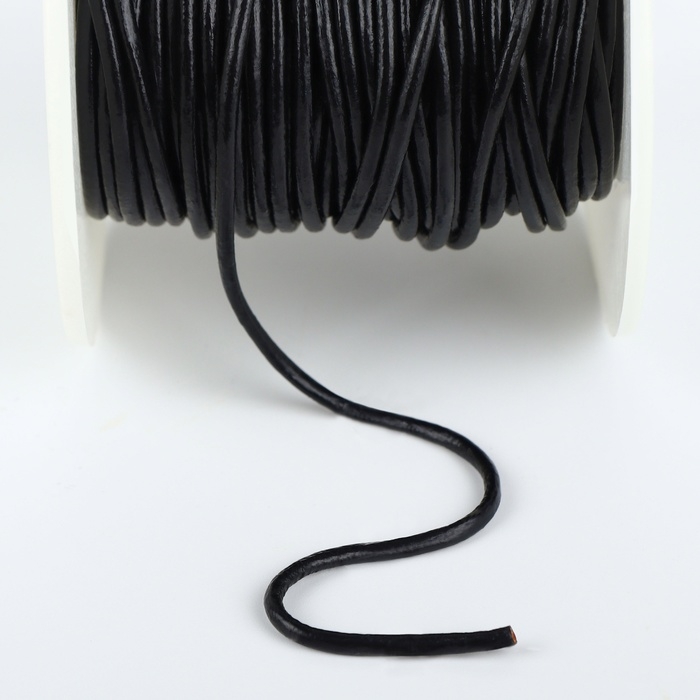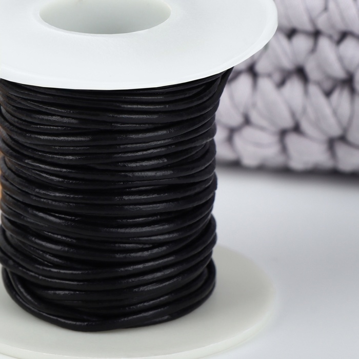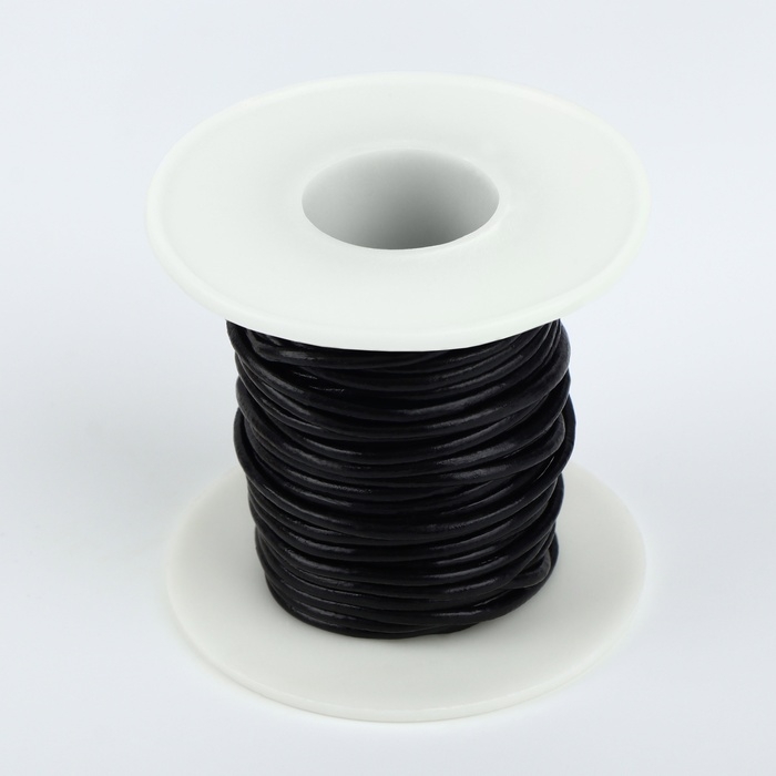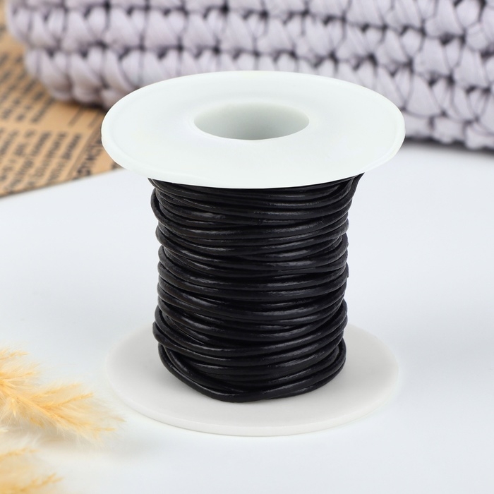 Нить для плетения, натуральная кожа, d = 2 мм, 10 ± 0,5 м, цвет чёрный