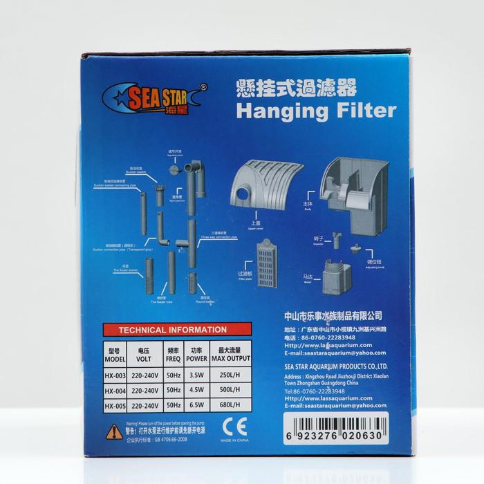 Фильтр каскадный Sea Star HX-004 - это компактный и эффективный фильтр, который обеспечивает очистку воды в аквариуме с производительностью 500 л/ч и мощностью 4,5 Вт.
