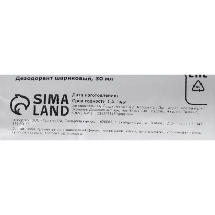 Шариковый дезодорант, Ледяная свежесть, 30 мл