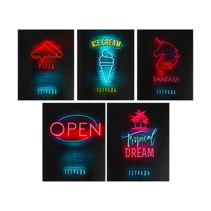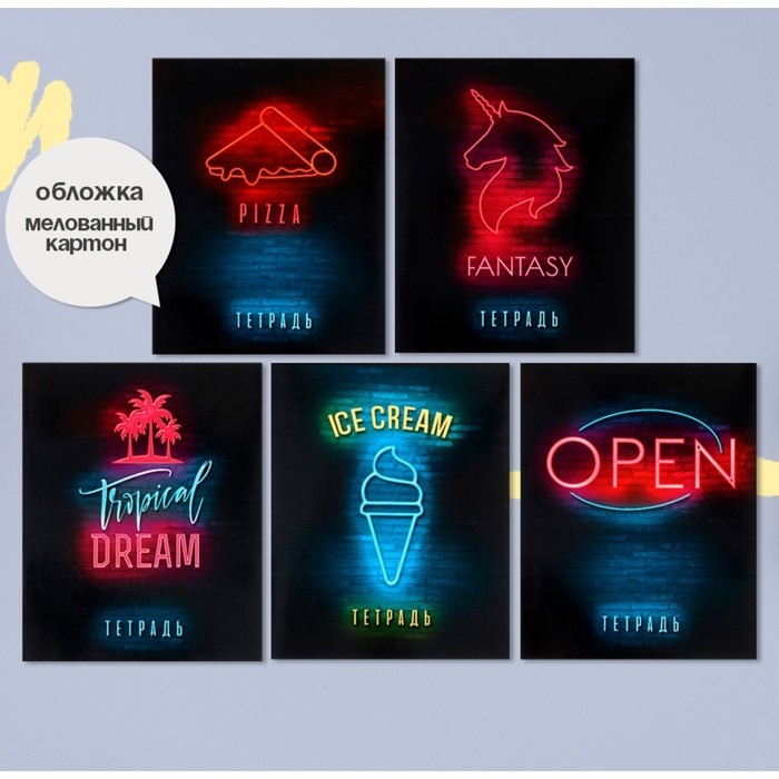 Комплект тетрадей из 5 штук, 36 листов в клетку Calligrata "Неон", обложка мелованный картон, блок офсет