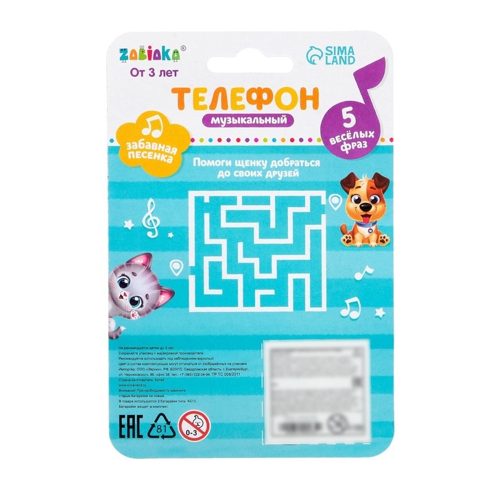 Музыкальный телефончик «В гостях у лисички», звуковые эффекты, работает от батареек