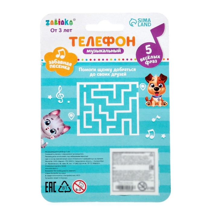 Музыкальный телефончик «В гостях у лисички», звуковые эффекты, работает от батареек
