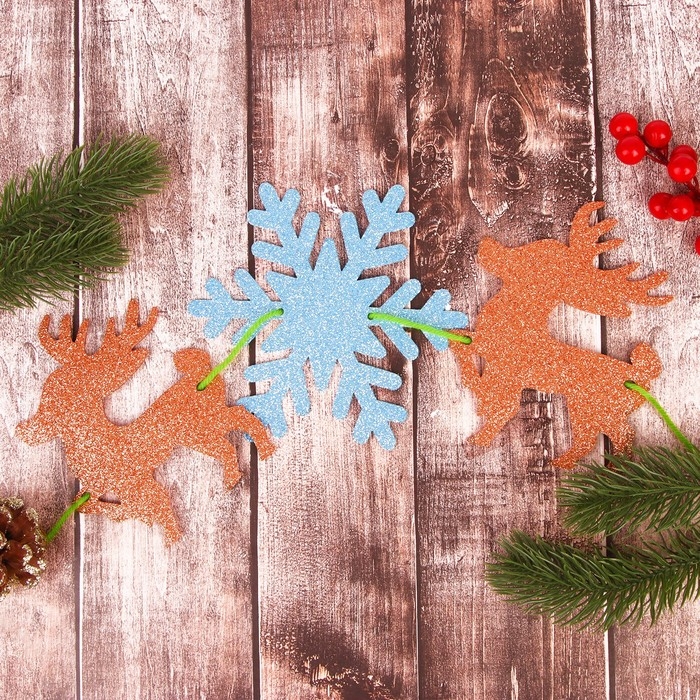 - Гирлянда поставляется в разобранном виде. Чтобы собрать её, необходимо продеть сквозь все фигурки верёвку (входит в комплект)