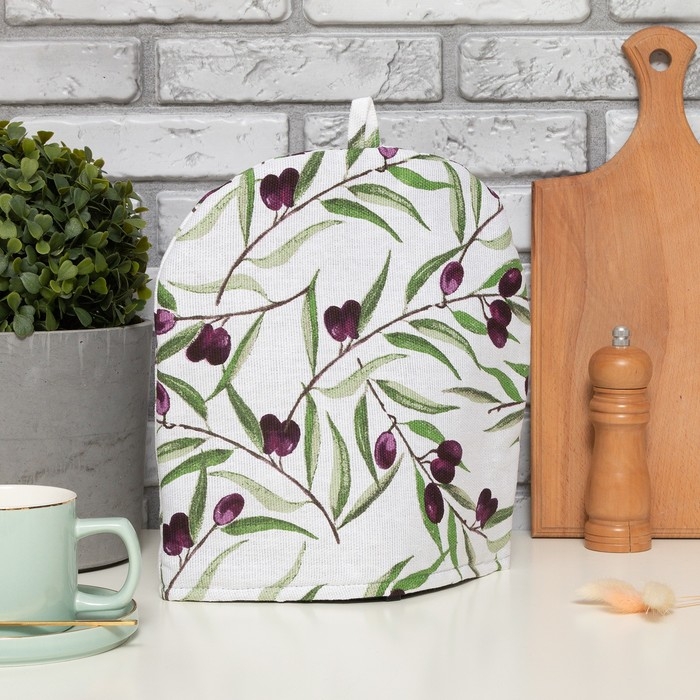 Грелка на чайник Доляна Olives 28х28 см, 100% хлопок, рогожка 164 г/м2
