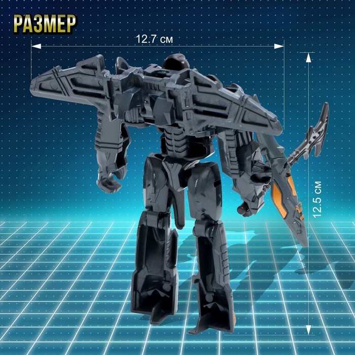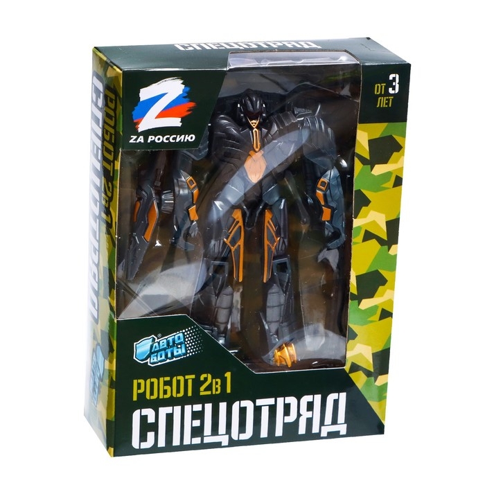 Робот с трансформацией — игрушка 2 в 1. Её можно за несколько шагов превратить в истребитель. Процесс трансформации происходит плавно и без усилий, что позволяет ребёнку легко трансформировать робота, подстраиваясь под игровой сюжет.