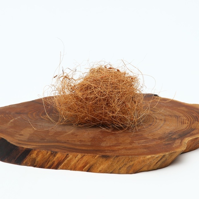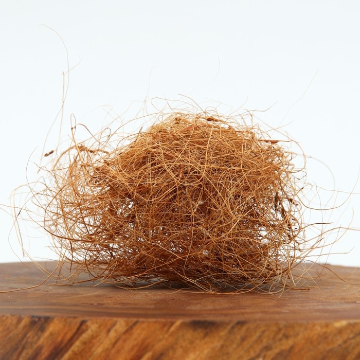 Благодаря высокому содержанию лигнина кокосовое волокно очень эластично, отличается прочностью и не поддается гниению. Имеет то же назначение, что и мох сфагнум, но служит дольше.