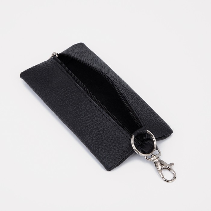 Ключница на молнии, длина 15 см, кольцо, карабин, цвет чёрный