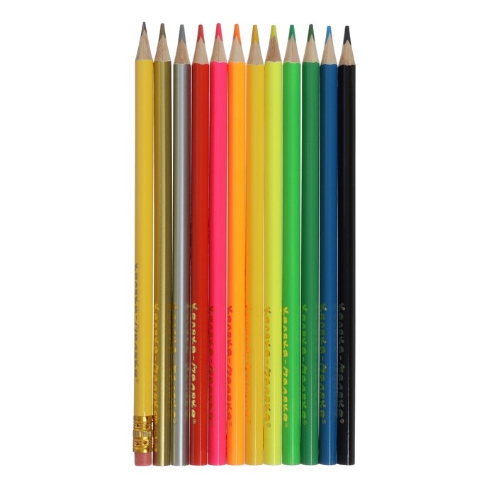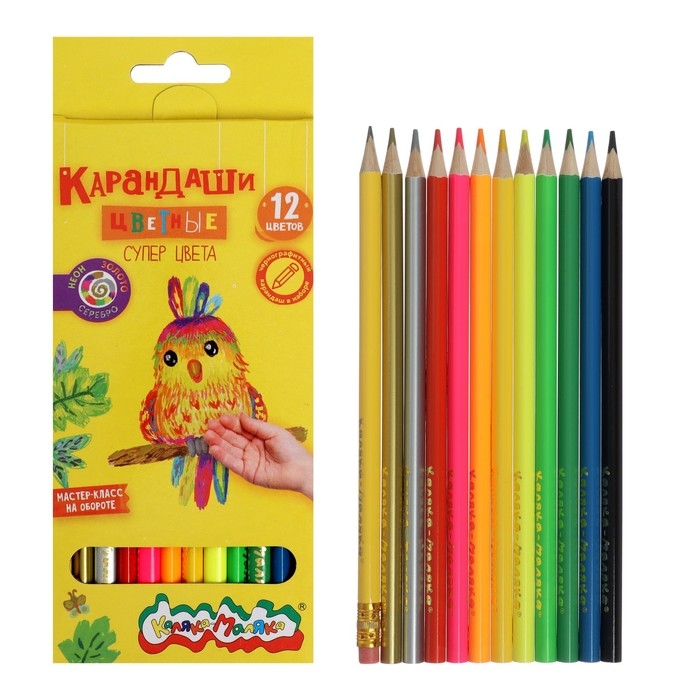 Карандаши 12 цветов Каляка-Маляка "СУПЕР ЦВЕТА", неоновые, шестигранные, деревянный корпус
