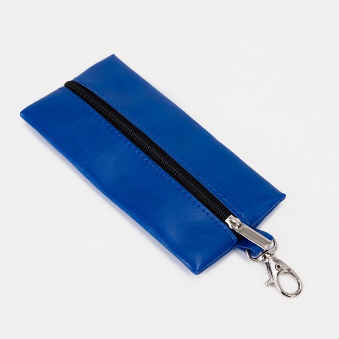 Ключница на молнии, длина 14 см, кольцо, карабин, цвет синий