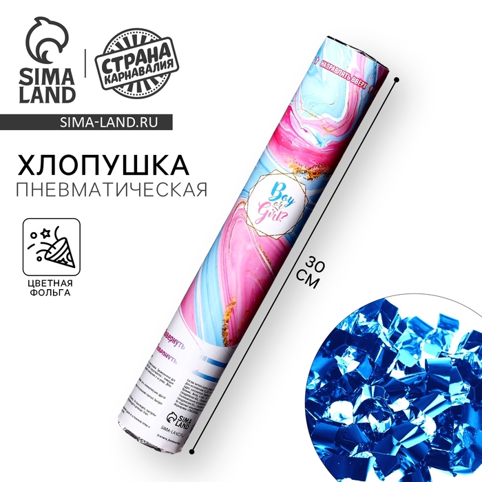 Гендер-пати. Хлопушка пневматическая Boy or Girl, мрамор« мальчик, 30 см