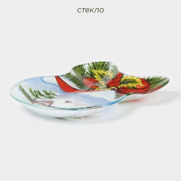 Блюдо стеклянное сервировочное Доляна «Бант. Новогодняя сказка», 19×14 см