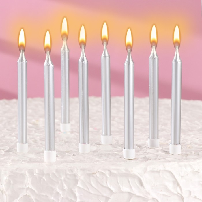 Набор свечей для торта "Манхеттен", 9 см, 8 шт, 24 мин, серебряный металлик
