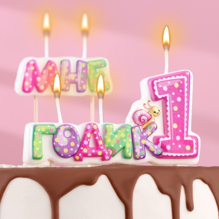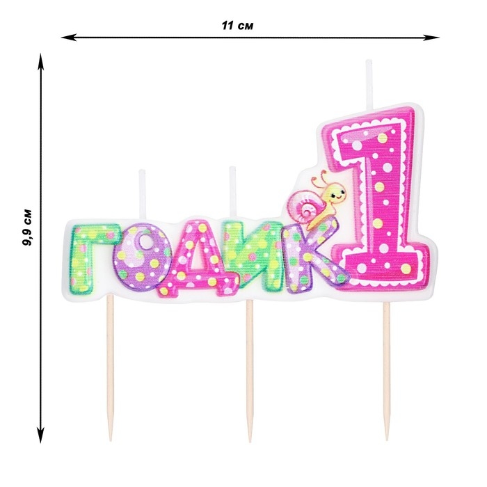 Свеча в торт на шпажке для девочек "Мне годик", 7,7 см, 12 мин, 65 г