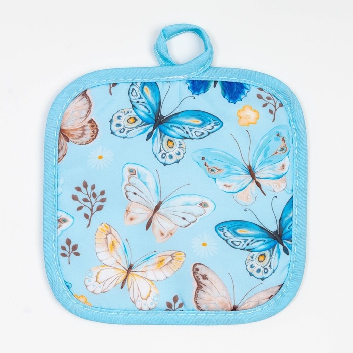 Кухонный набор 2 прихватки Этель «Бабочки» , прихватка 17х17 см, варежка 24х16 см, 100% п/э