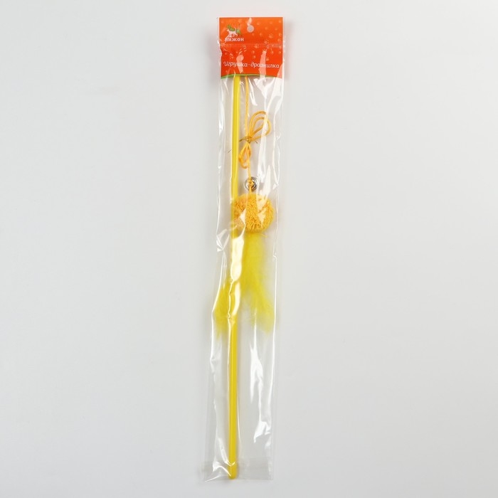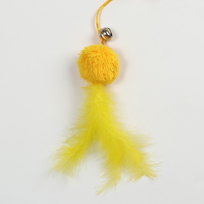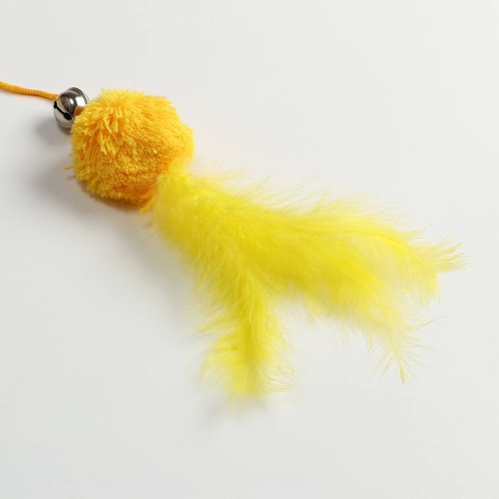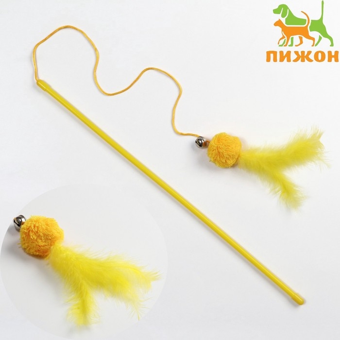 Дразнилка-удочка с мягким шариком и перьями, жёлтая