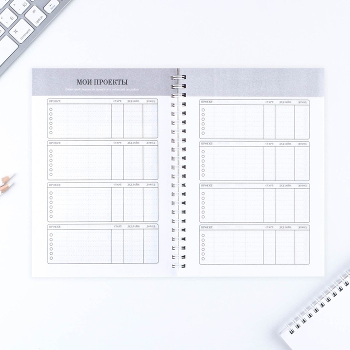 Планинг для записи клиентов А5, 98 листов, на гребне «Работа-МЕЧТА», в твердой обложке с уф-лаком