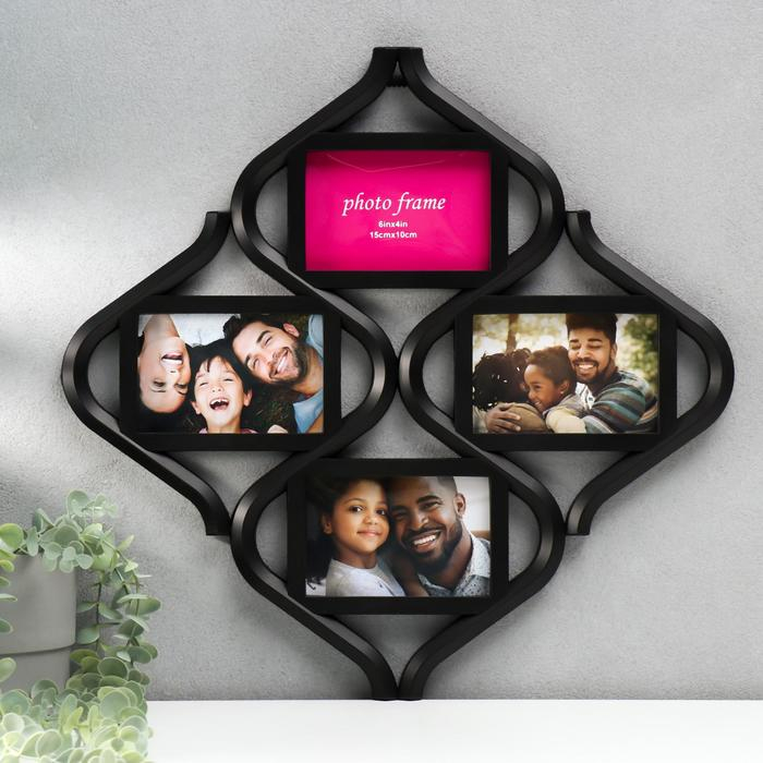 Фоторамка пластик на 4 фото 10х15 см "Песочные часы" чёрная 38x38 см