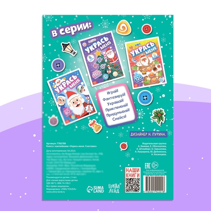 Книга с наклейками «Укрась меня. Снеговик», 12 стр.