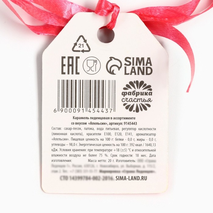 Состав: сахар-песок, патока, вода питьевая, регулятор кислотности (лимонная кислота), красители Е100, Е120, Е141, ароматизатор «Тутти-фрутти».
