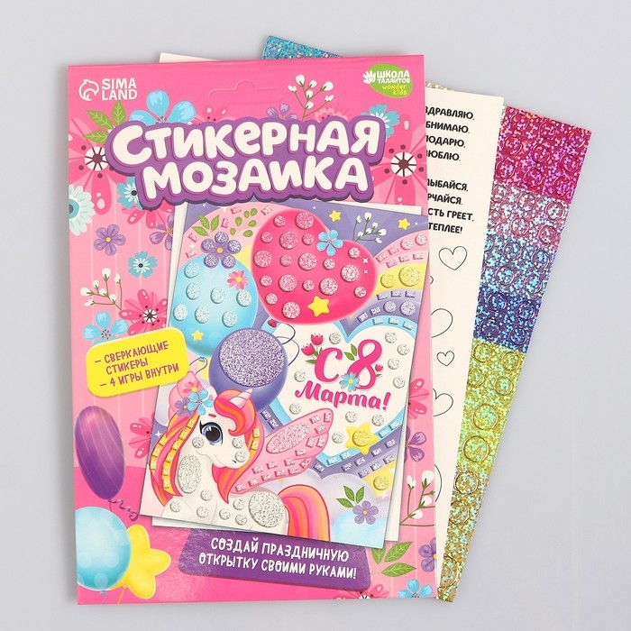 Аппликация стикерами на 8 марта форменная «Единорожка», набор для творчества