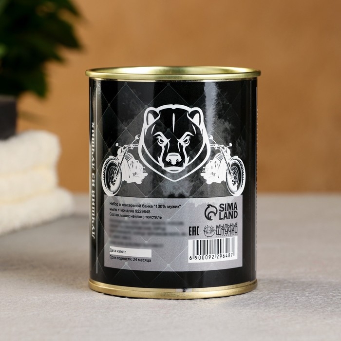 Набор в консервной банке "100% мужик" мыло + мочалка