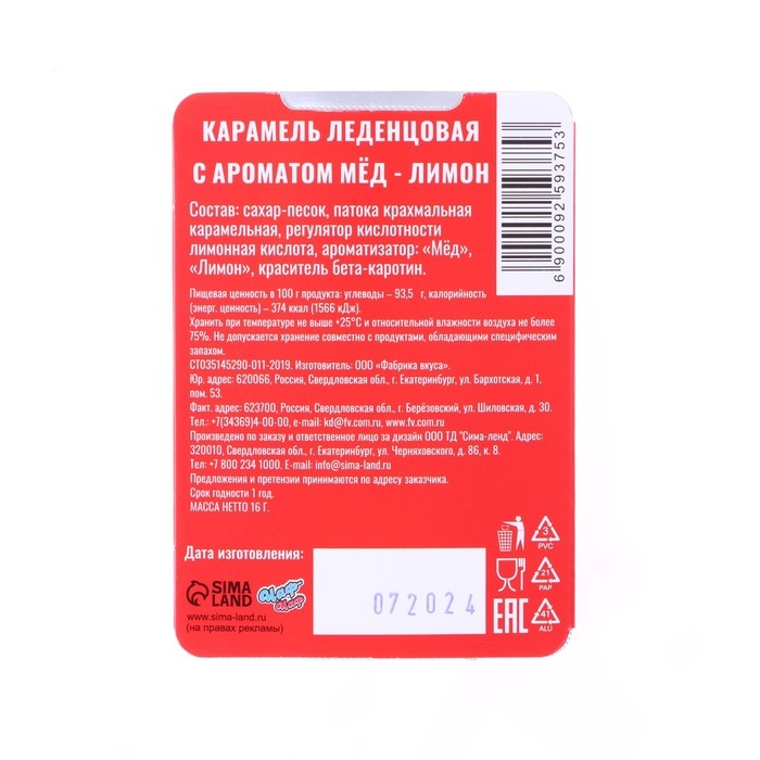 Леденцы "С Новым Годом!" со вкусом мёда и лимона, 16 г