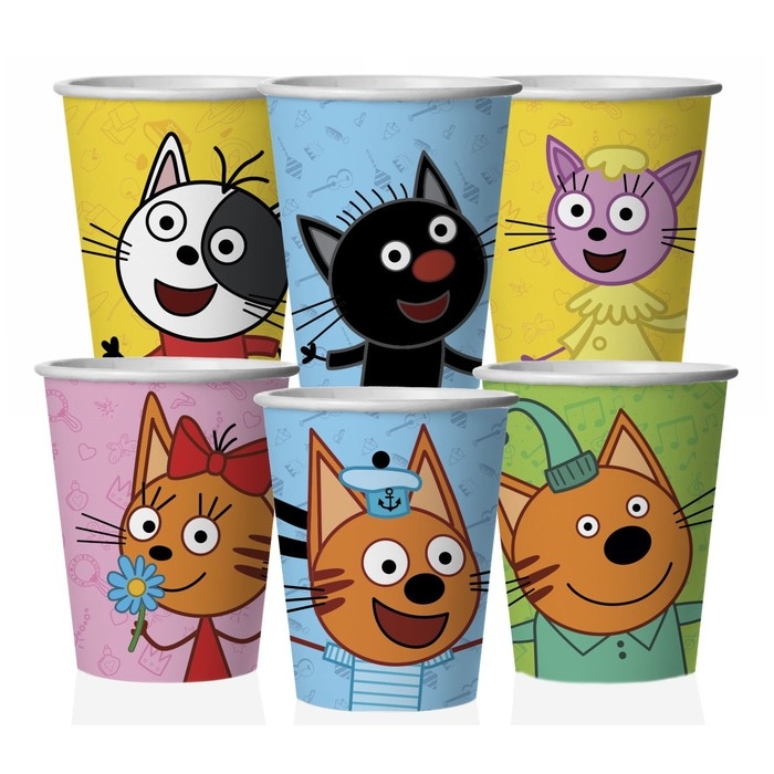 Стакан бумажный «Три кота», в наборе 6 шт., 250 мл