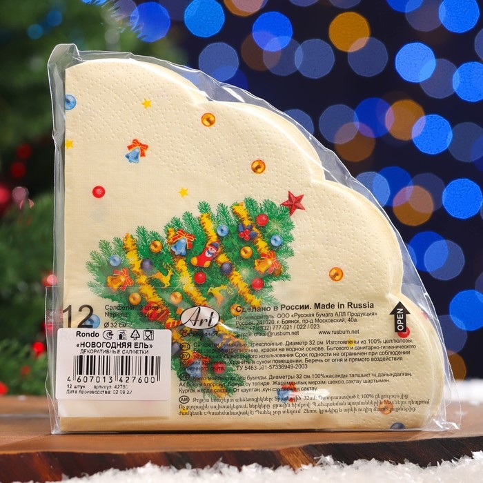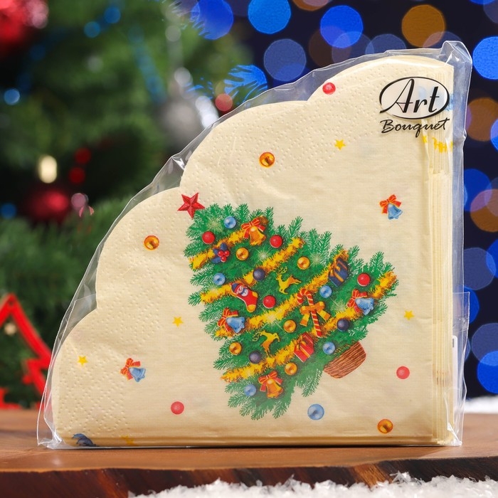 Новый год. Салфетки бумажные Art Bouquet Rondo "Новогодняя ель", 3 слоя, d 32, 12 шт