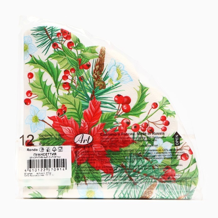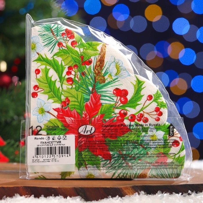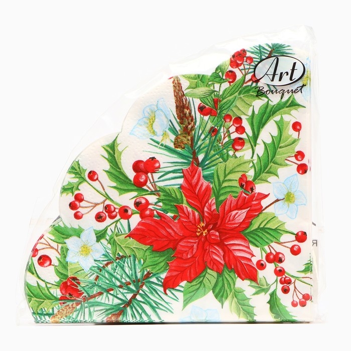 Новый год. Салфетки бумажные Art Bouquet Rondo "Пуансеттия", 3 слоя, d 32, 12 шт