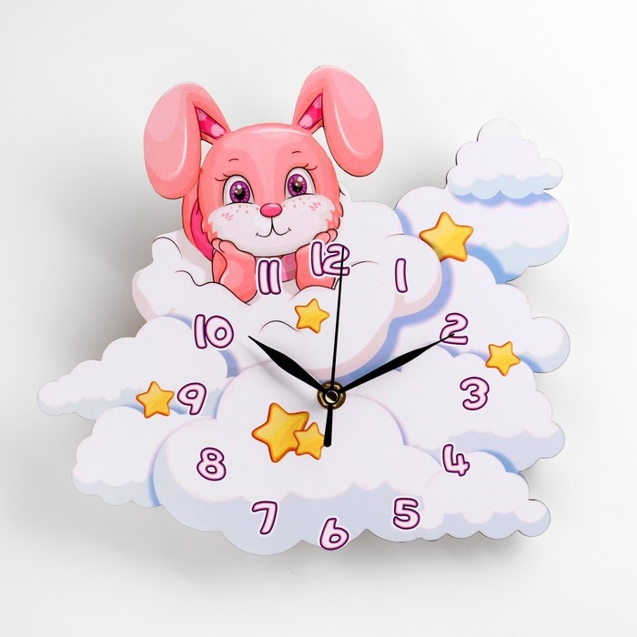 Часы настенные интерьерные "Зайчик на облаке", 23 х 25.5 см
