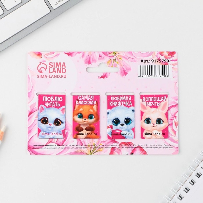 Магнитные закладки мини «Зверята», 4 шт