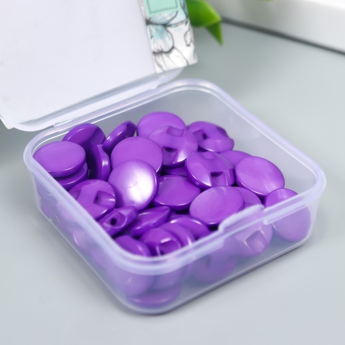 Пуговицы пластик на полуножке "Кругляш Фиолет 1,3х1,3 см набор 50 шт 2х5,5х5,5 см