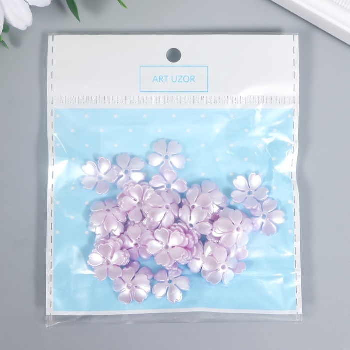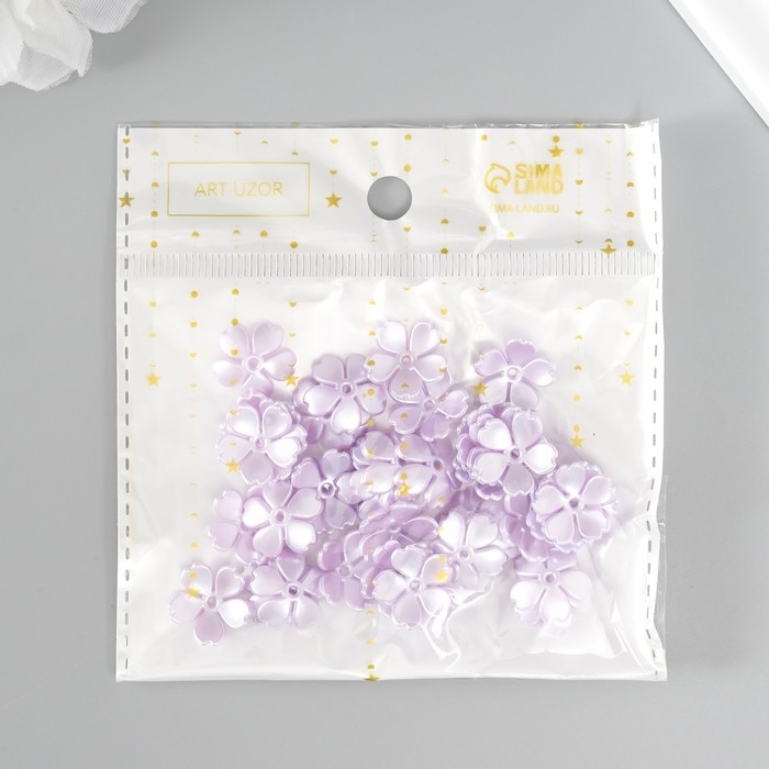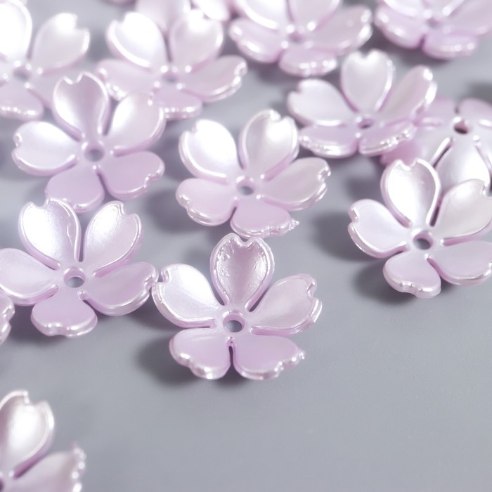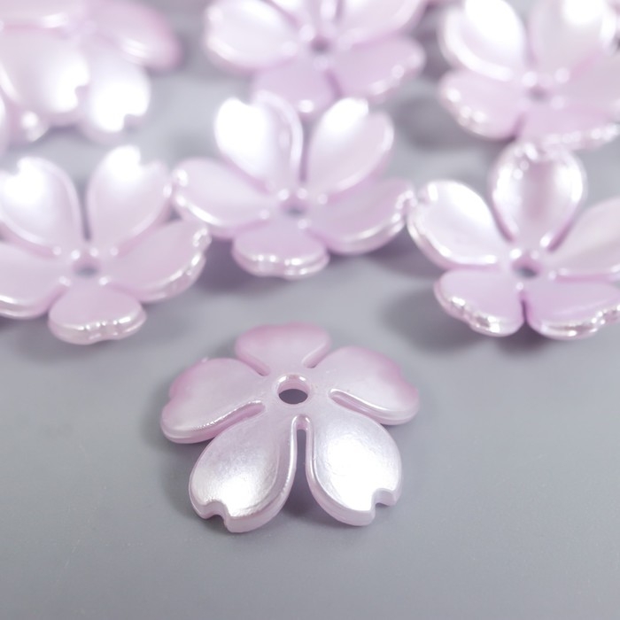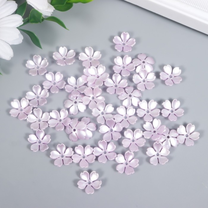 Бусины для творчества пластик "Цветочек жемчужный" набор 40 шт сиреневый 1,5х1,5 см