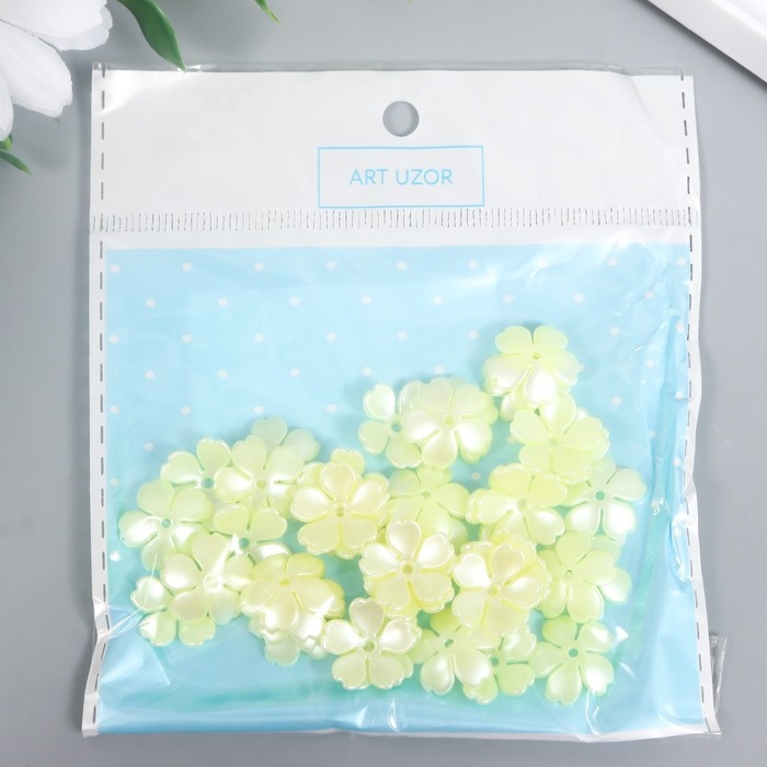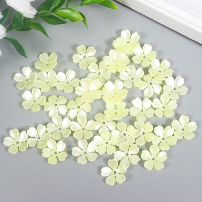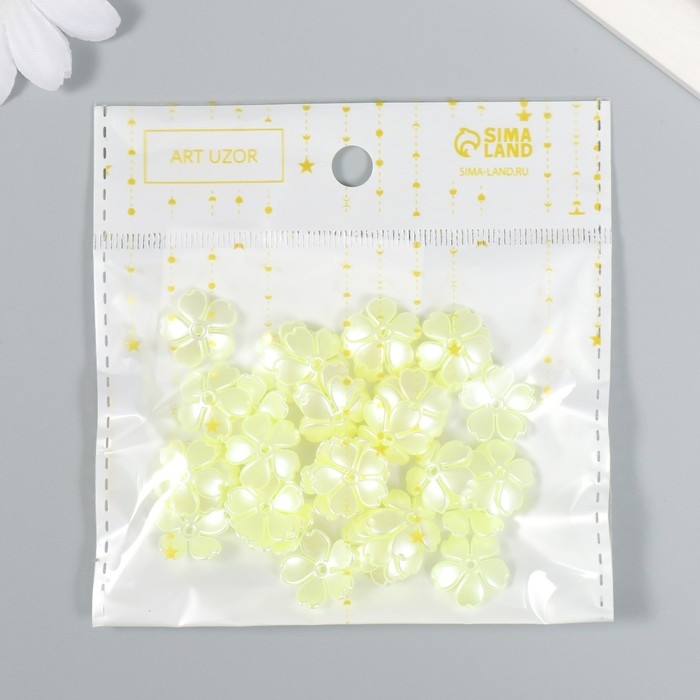 Бусины для творчества пластик "Цветочек жемчужный" набор 40 шт белый 1,5х1,5 см