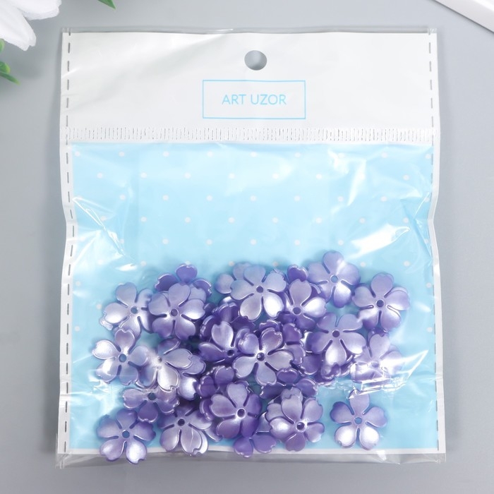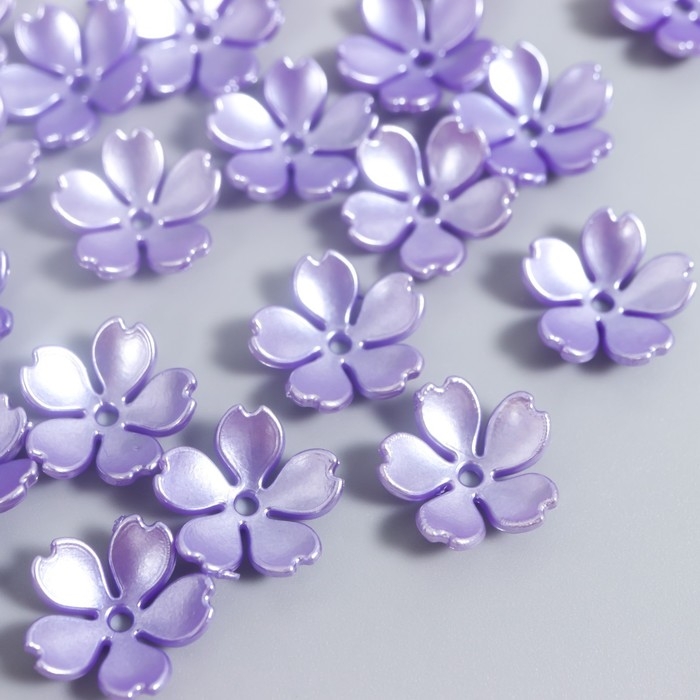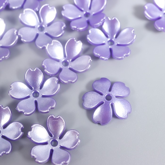Бусины для творчества пластик "Цветочек жемчужный" набор 40 шт фиолетовый 1,5х1,5 см