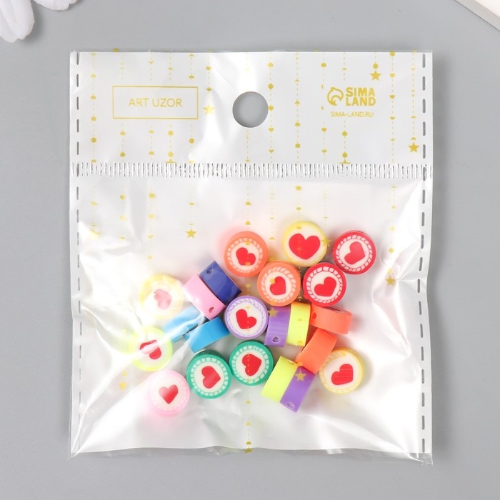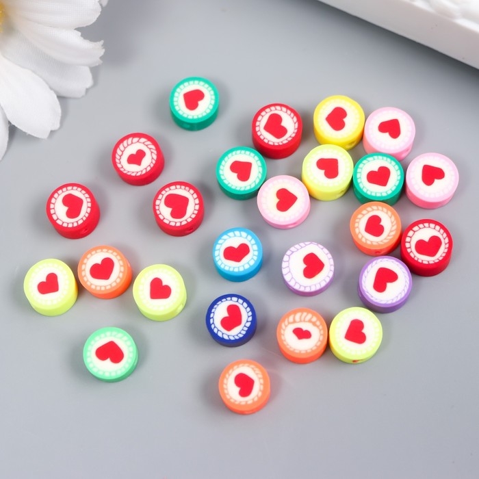 Бусины для творчества PVC "Сердечки - печать" набор 25 шт 0,5х0,9х0,9 см
