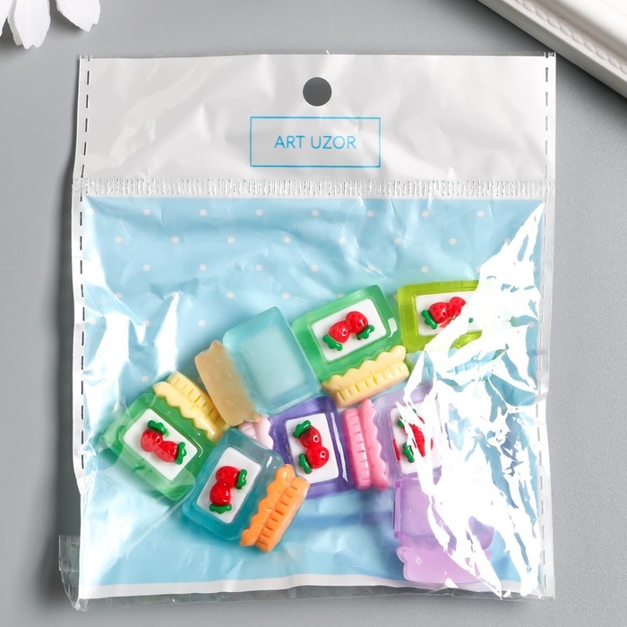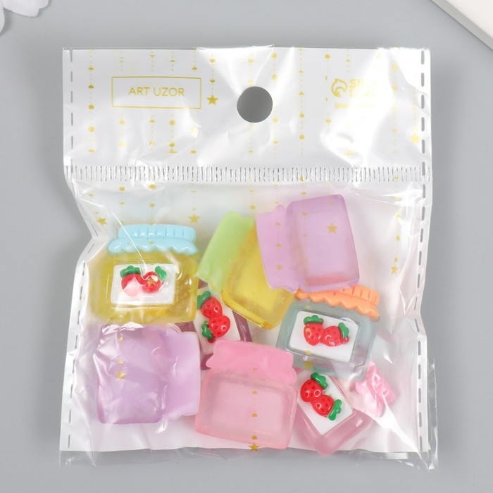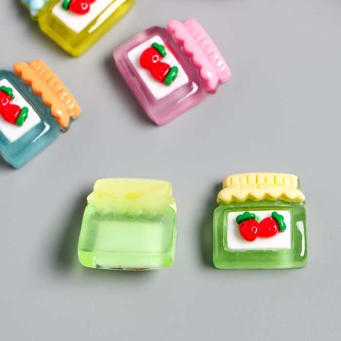 Декор для творчества пластик "Варенье клубничное в банке" набор 8 шт 2х2,1х0,7 см