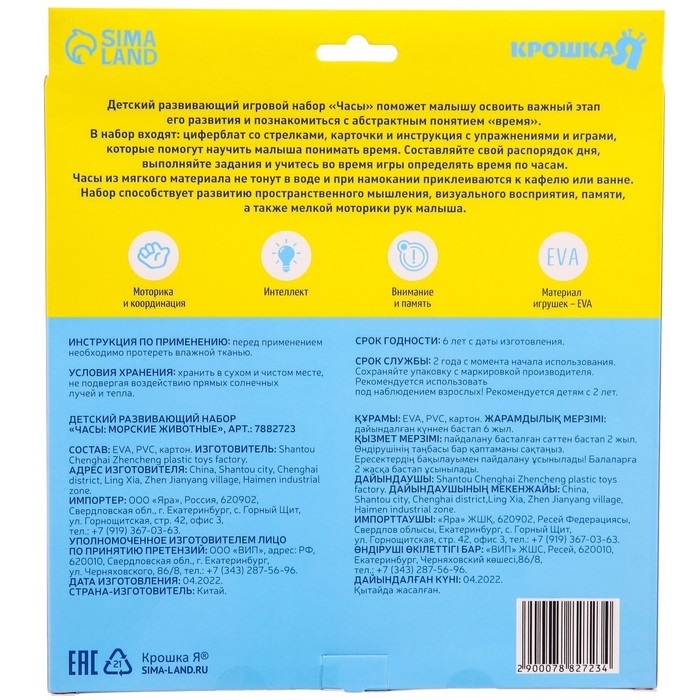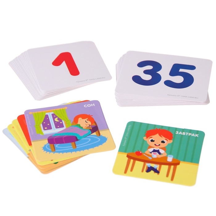 В набор входят: циферблат со стрелками, карточки и инструкция с упражнениями и играми, которые помогут научить малыша понимать время. Составляйте свой распорядок дня, выполняйте задания и учитесь во время игры определять время по часам.