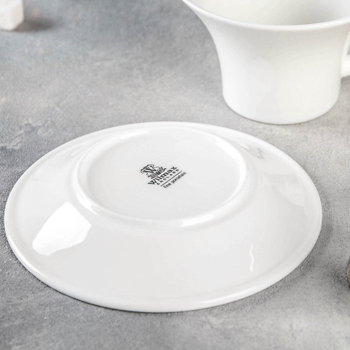 Чайная пара фарфоровая Wilmax, 2 предмета: чашка 330 мл, блюдце, цвет белый