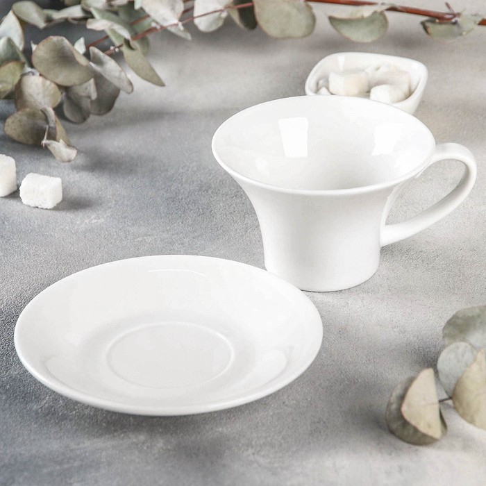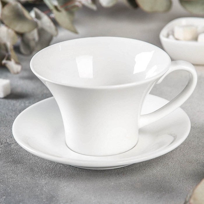 Чайная пара фарфоровая Magistro «Бланш», 2 предмета: чашка 250 мл, блюдце d=15,5 см, цвет белый