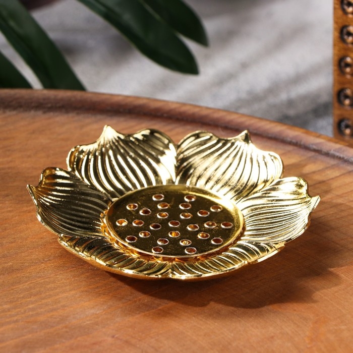 Подставка для благовоний порошковых и конусов "Цветок", золотистый, d=8,5 см