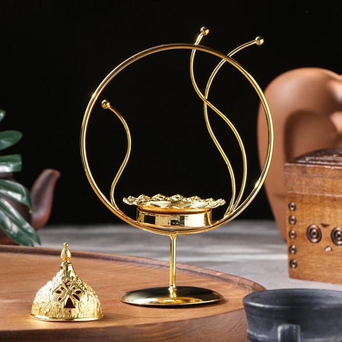 Курильница для благовоний порошковых и конусов "Дерево", золотистый, 18х17 см