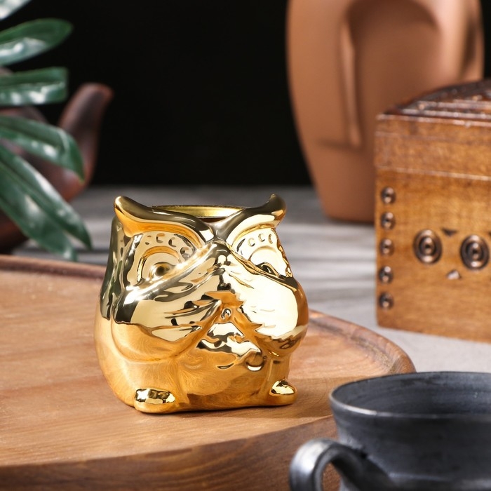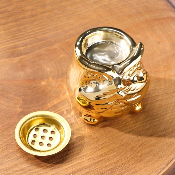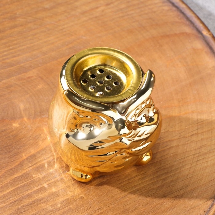 Подставка для благовоний порошковых и конусов "Сова", золотистый, 7х7х3,5 см