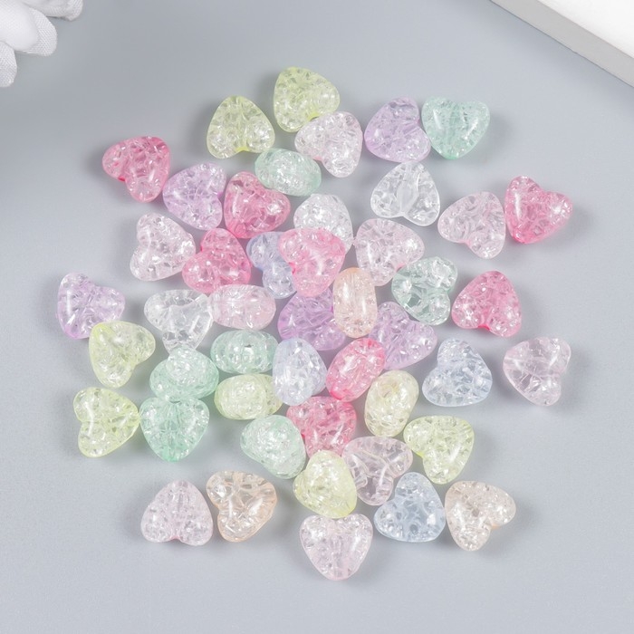 Бусины для творчества пластик "Сердца битое стекло" набор 20 гр 0,6х1х1 см