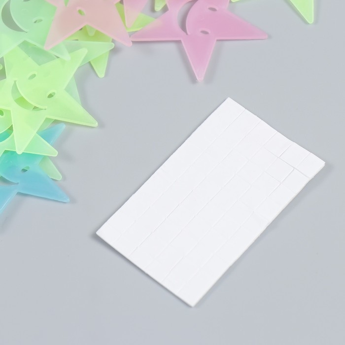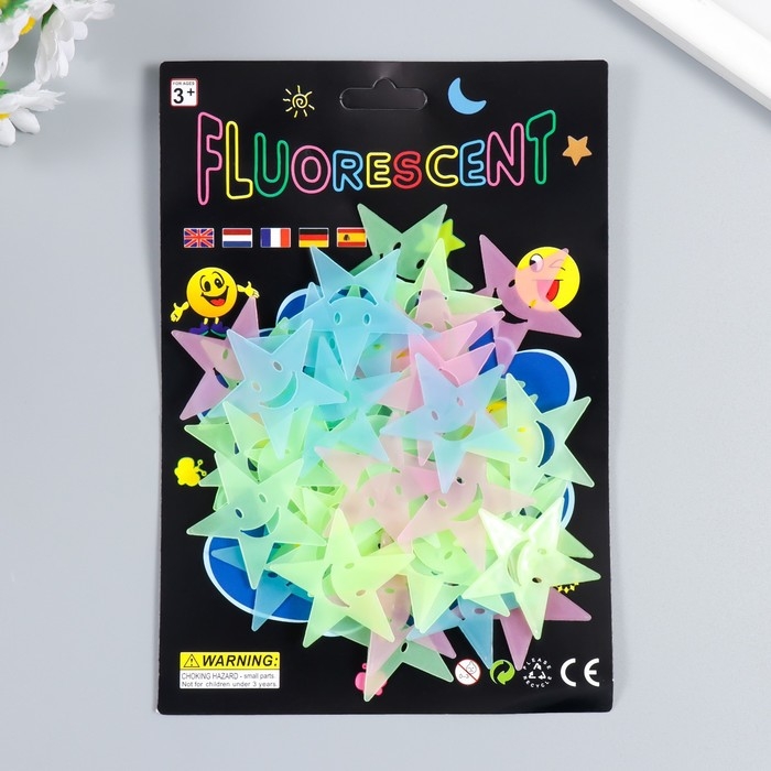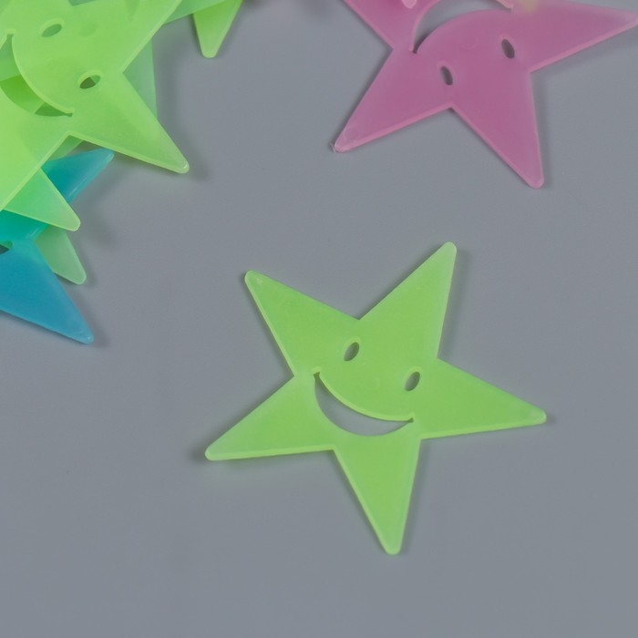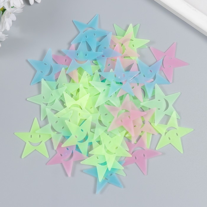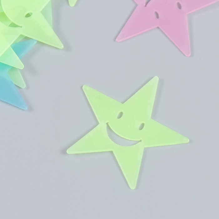 Наклейка фосфорная пластик "Звезды-смайлики" набор 40-43 шт 19х13 см