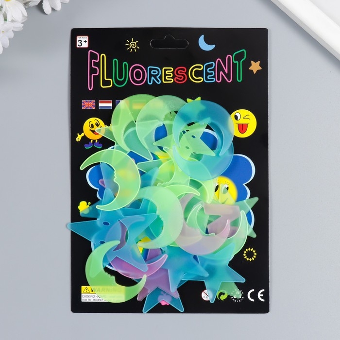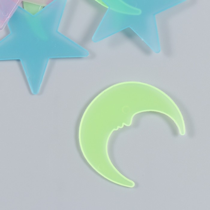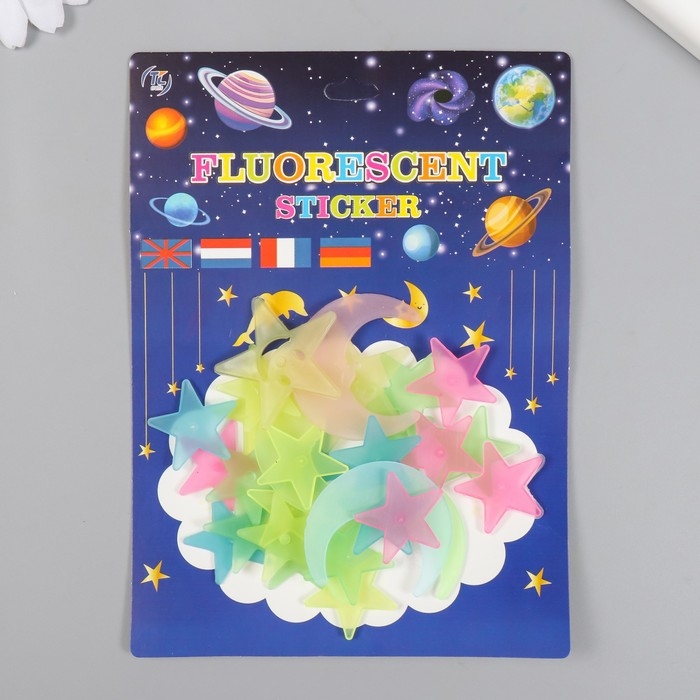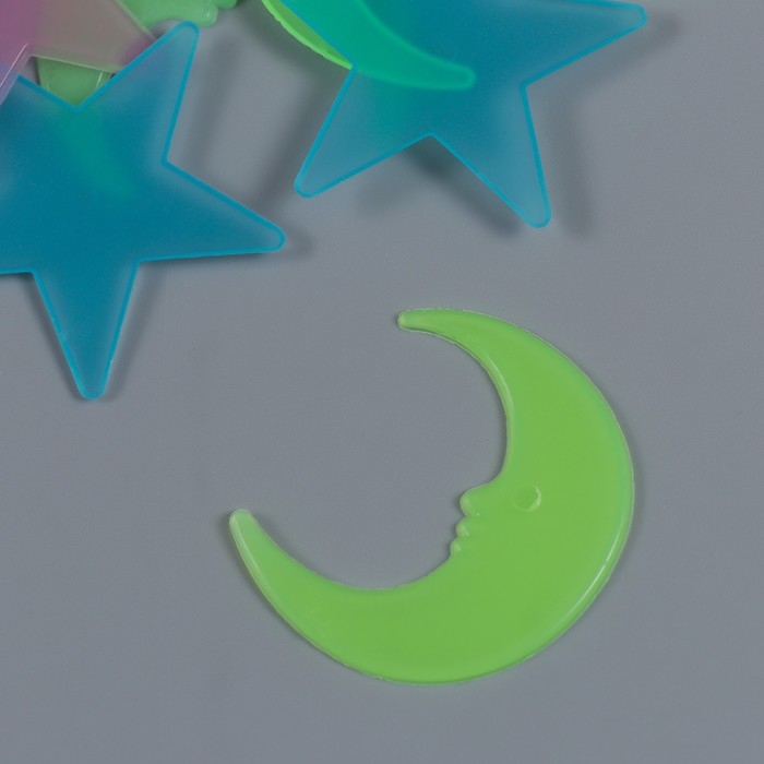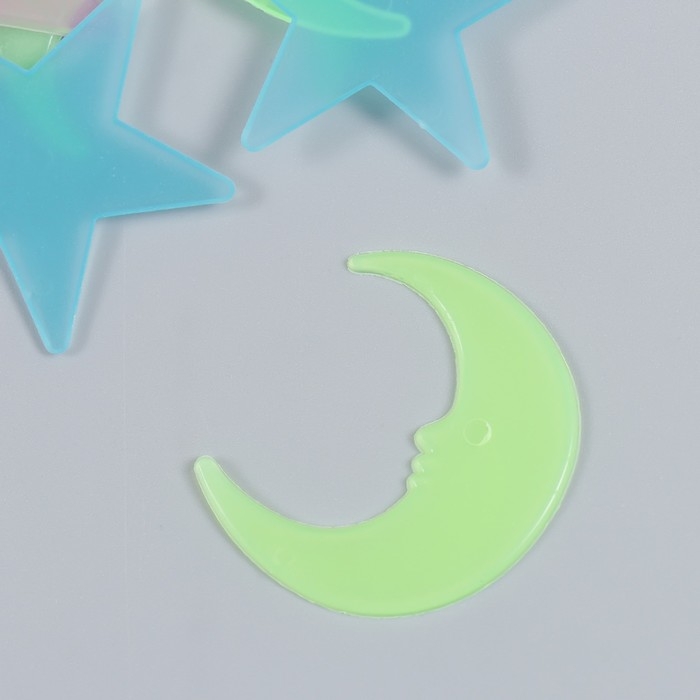 Наклейка фосфорная пластик "Звезды и месяцы" набор 25-29 шт 19х13 см