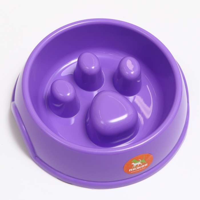 Миска для медленного кормления "Лапа", 22,5 х 23 х 6,5см, фиолетовая